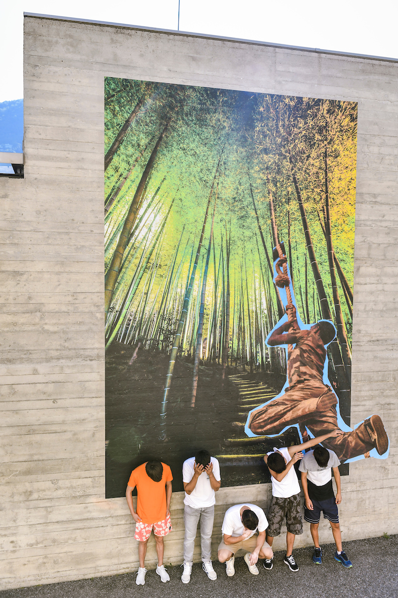 Organised by the Ticino artist Sir Taki, this project consists of a large wall collage, entitled Adam, the result of the collaboration between the artist and various unaccompanied minors seeking asylum from the Federale Pasture Centre in Balerna. Since November 2021, the artist has in fact been meeting with youths of different nationalities aged between 13 and 17 as part of a series of creative workshops in collaboration with the teacher Margherita Rocchi. These meetings have been attended by 35 people and 110 collages have been made. The works produced by the young people under the guidance of Sir Taki are amazing from both the perspective of technique and the messages they convey. And hence the urgency and desire to show them to the public also as a point of reflection and dialogue on the issue of asylum seekers and more generally on welcoming those in difficulty. The selected collage was posted by the artist and the youths on 25-27 July 2022 on the wall of the building of the Lugano Section of the Swiss Life-Saving Society at Via Foce 7a in Lugano, where it will remain on display until the end of September 2022. Sir Taki is a film-maker and visual artist from Ticino. He holds a degree in Advertising Communication from the Università Cattolica of Milan and a degree in Film Direction from the Met Film School in London. His latest works include the image for the 2020-21 season of LAC Lugano Arte e Cultura, the mural I Liberi? for the 2021 Chiasso Biennial and the permanent work Boriska on the façade of the new Cinema Lux in Massagno. Sir Taki met with the public at the Darsena Boathouse of the Parco Ciani on Saturday, 30.07 at 11:00 to present the works of all the participants, as well as the entire design process.