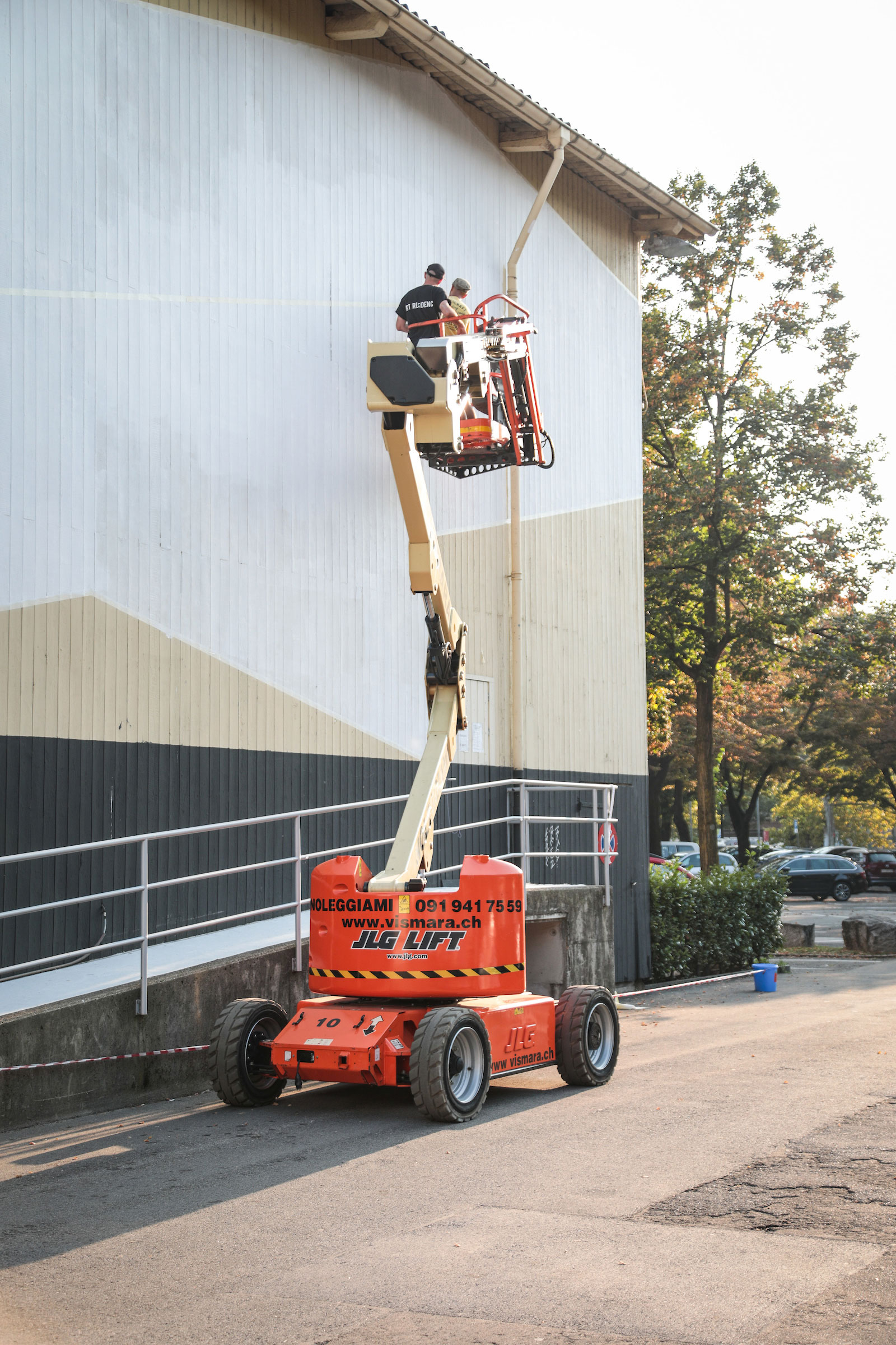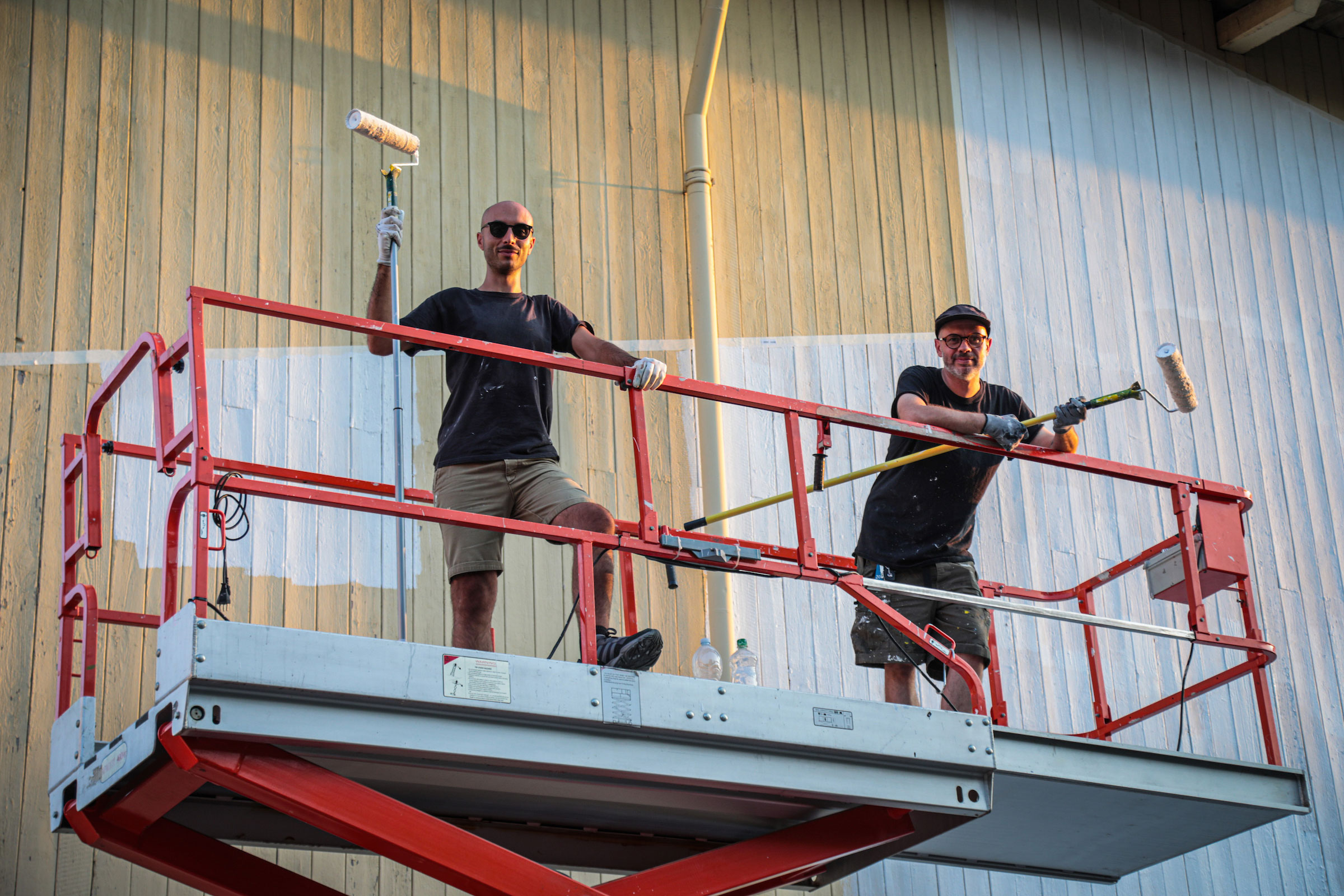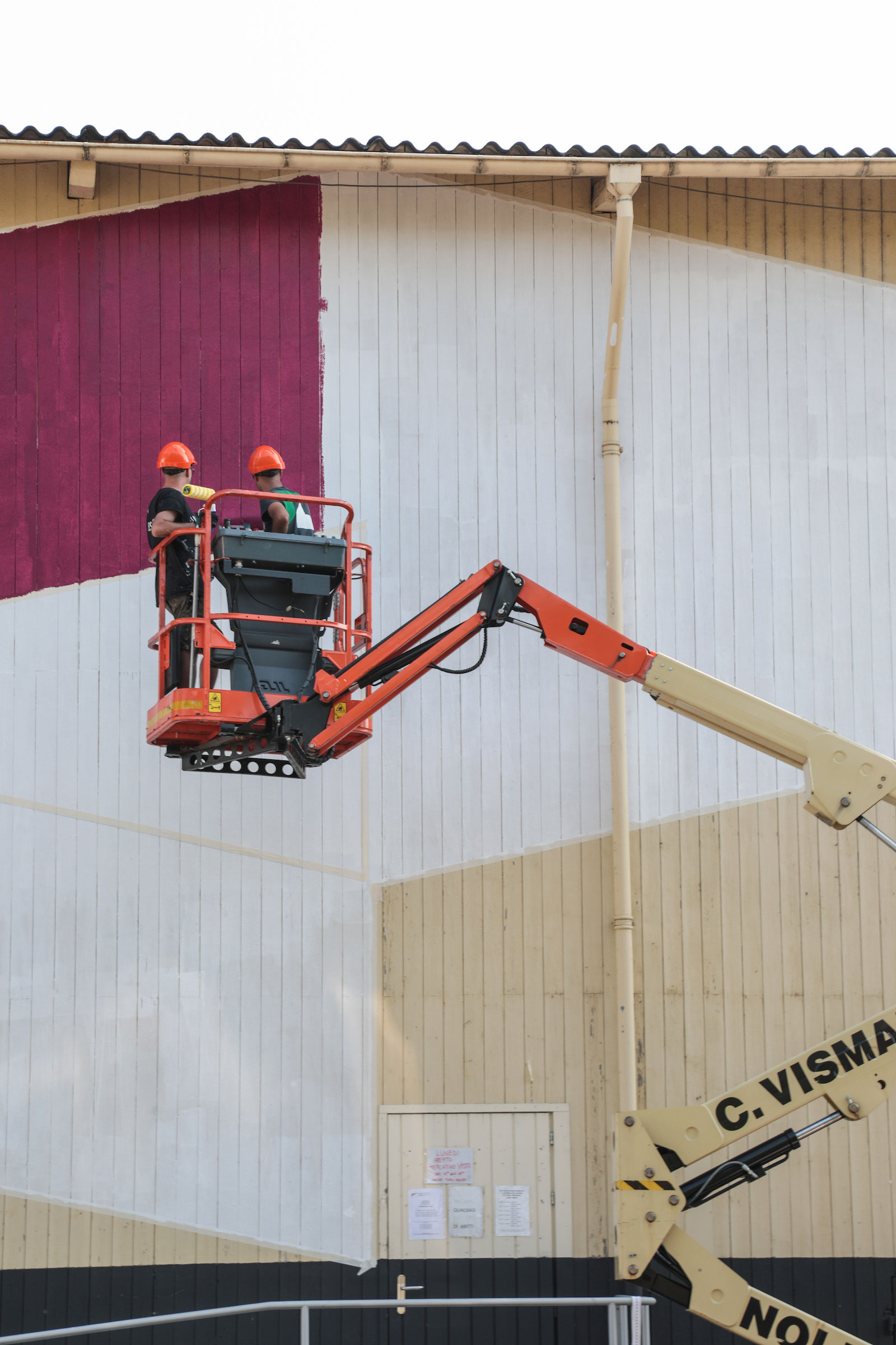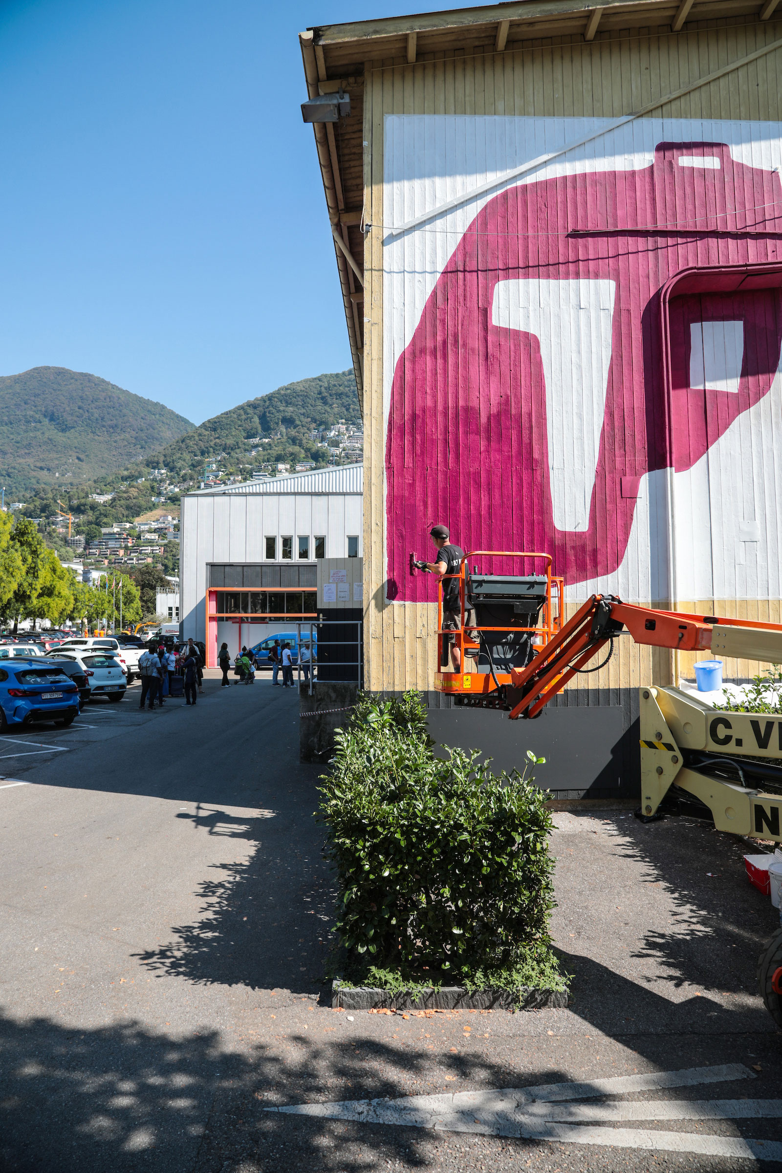 Two renowned artists from the Italian and international scene, 108 (Guido Bisagni) and CT (Matteo Ceretto Castigliano), worked on two walls of the Padiglione Conza (Campo Marzio side) to create two closely interconnected works. The two artists have in fact been developing a joint project for quite some time now: interventions that interact, converse with and compare one another, without ever totally merging into one. In fact, there are many similarities between them: in addition to their abstract and minimalist approach and the unity of the shapes and colours used, they share a particular awareness of the search for essence and formal harmony. Being both miles from the pop world, they pursue an intimate and profound search, a free and almost total immersion into shapes and colours. The individual path of each artist, however, always stands out: the systematic, soft and mostly profoundly black forms of 108 are thus combined with the sharper, more rigorous and geometric ones of CT. Two works that come together to form what can be defined as a single, but also a joint piece of art, thus one that is able to encompass the full complexity of two personal approaches in dialogue and in constant exchange with the surface on which they have been painted and the surrounding environment.