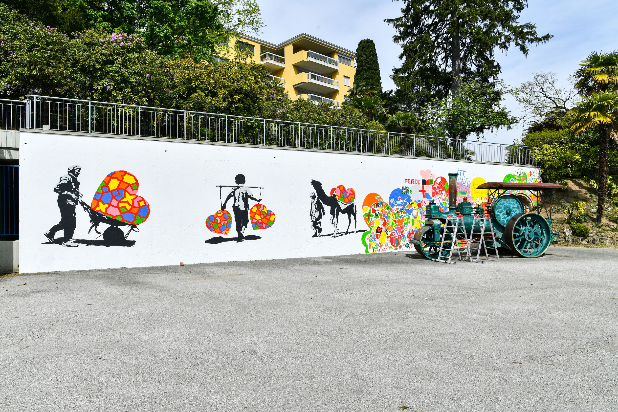 The ArtLords are a group of Afghan artists also known internationally for the socially-motivated graffiti they paint on blast walls in the city of Kabul. These walls protect ministries and international organisations from the numerous attacks in the capital. The name ArtLords is a peaceful provocation against the so-called war lords, who still control many regions of the country. Founded by three artists, the group has provided work for more than 40 people, enabling many families to survive. Their paintings aim to raise awareness among the local population through powerful images. The subjects they address are many: from the fight against corruption to violence against women, from child labour to the loss of Afghan traditions. Omaid Sharifi and Kabir Mokamel, two of the founders of the collective, created a large mural in Parco Tassino in Lugano, involving passers-by in its creation.