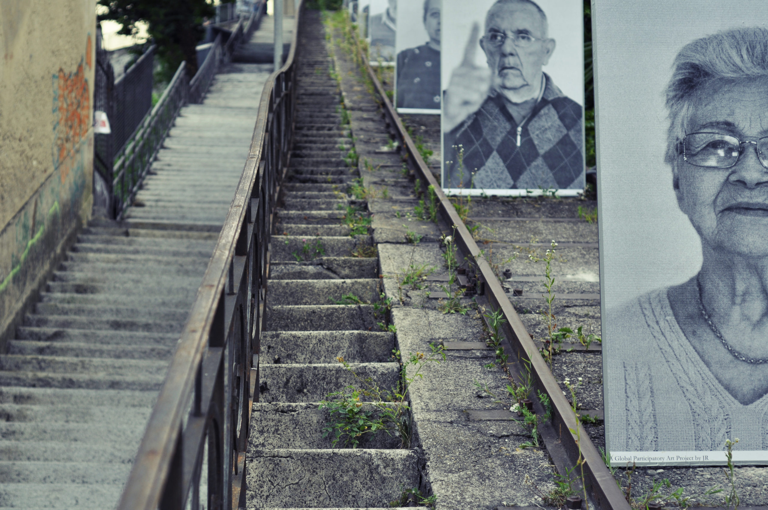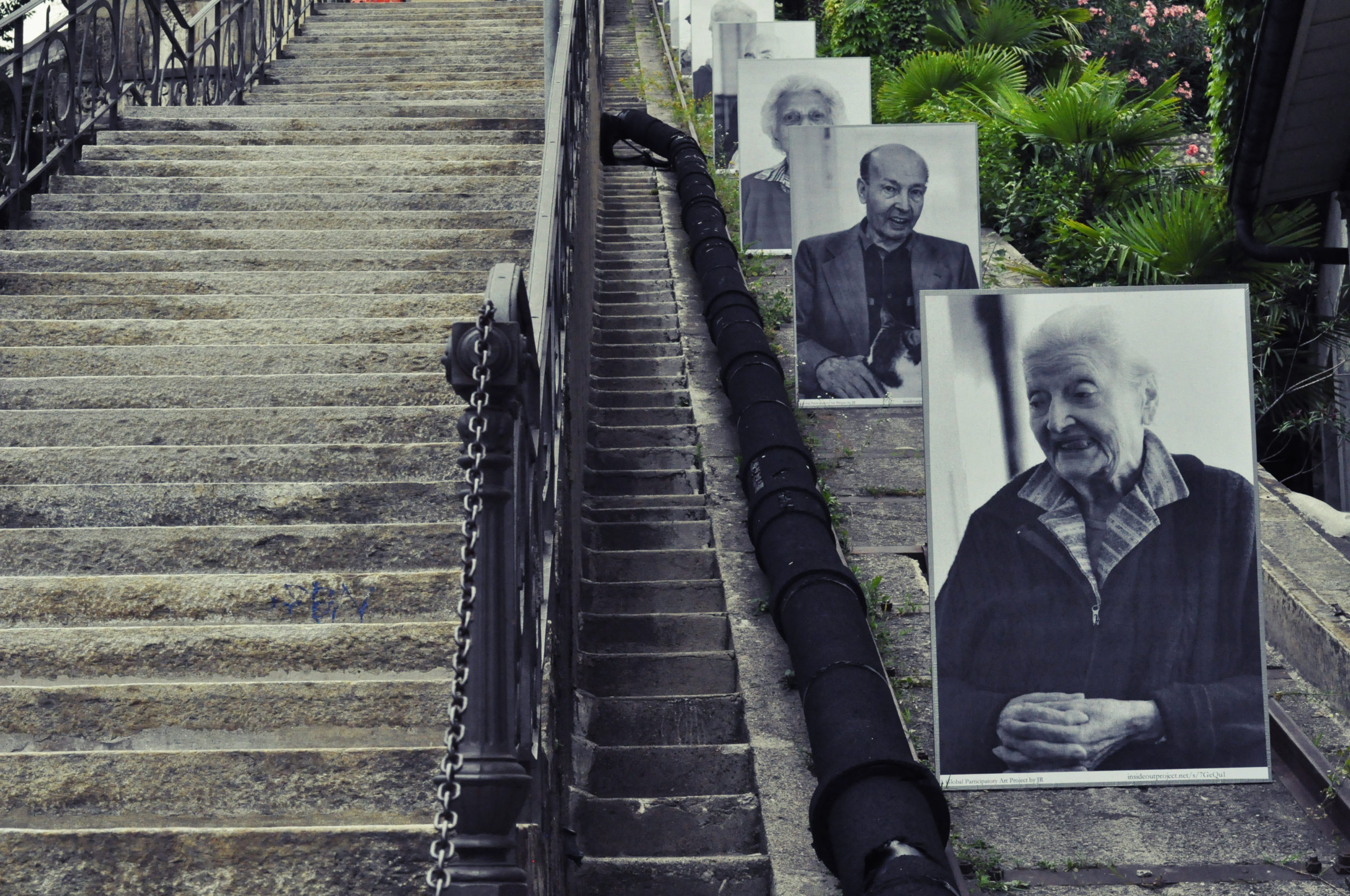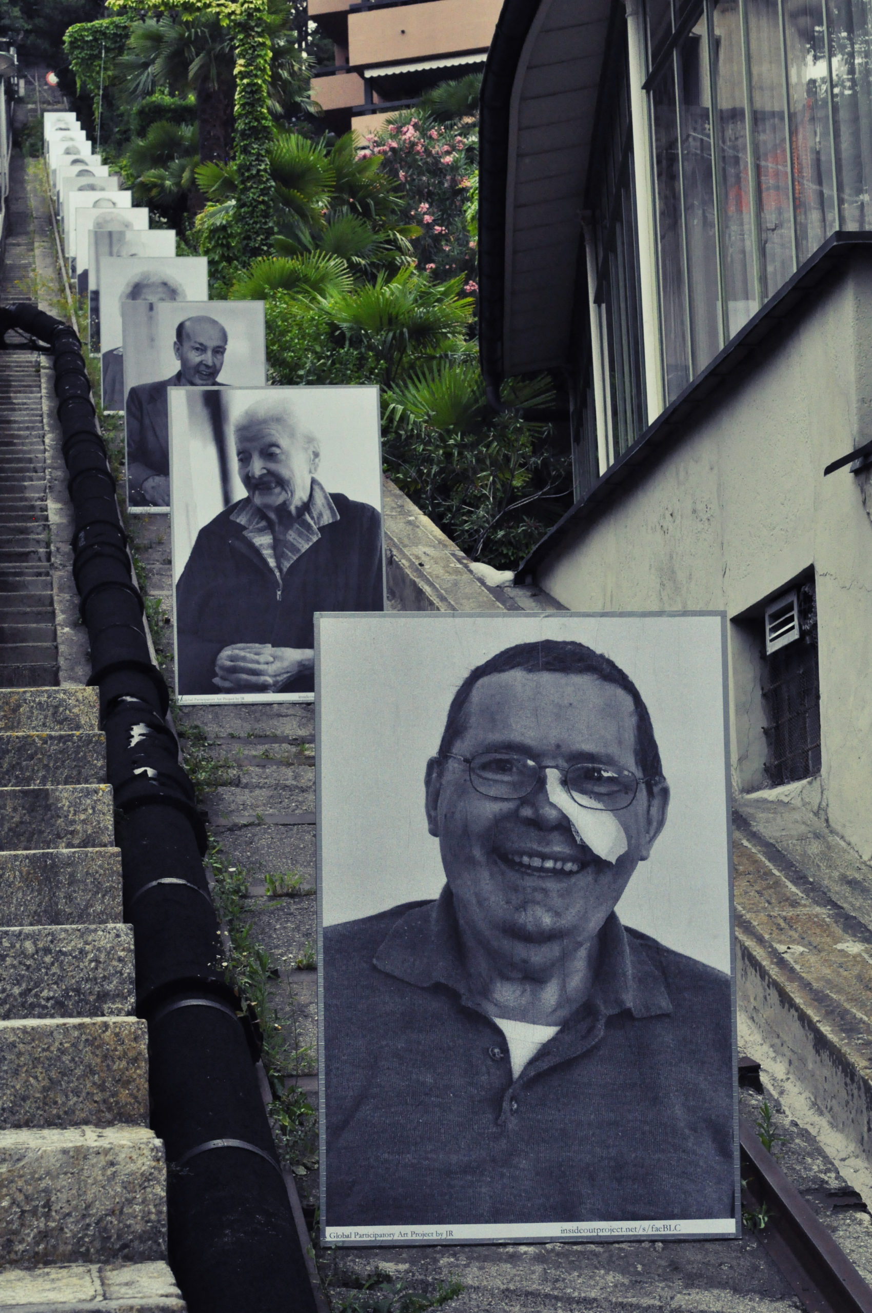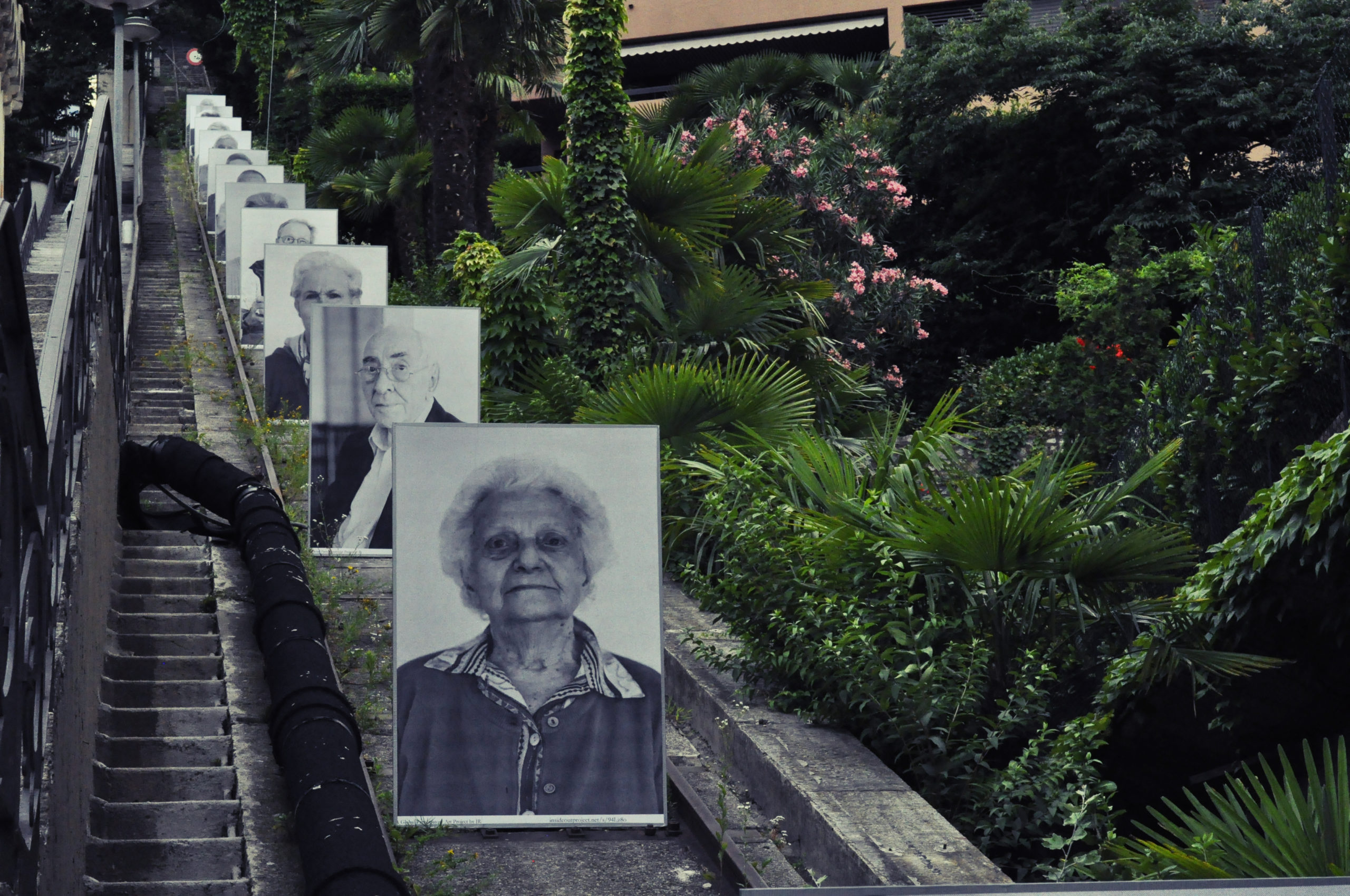 People and communities, whose voices for different reasons are less heard within societies, were invited by JR, a leading artist on the French and international scene, to create black and white photographic portraits with the aim of discovering, revealing and sharing untold stories through images of people from all over the world. These photographs, uploaded digitally by the participants on the project website, are transformed by the artist into giant posters and then sent back to the participants to be exhibited in their different communities. This is therefore a collaborative global art project: it has already been carried out in many countries, including Australia, Brazil, Colombia, France, Israel, Portugal, Spain and Thailand. In 2012, AUL also decided to join JR’s project, giving a voice to those living in old people’s homes: a segment of the population that now seems to be on the margins of social life, but is an integral and very important part of our city life. The participation in the Inside Out project was made possible thanks to the valuable collaboration and availability of the staff and guests, as well as their families, of Casa Serena (Lugano), and the attentive eye of Ticino photographer Anthony Neuenschwander. The portrait photos were exhibited outdoors along the Scalinata degli Angioli in Lugano: a space of great worth to the city, which is at the same time forgotten.