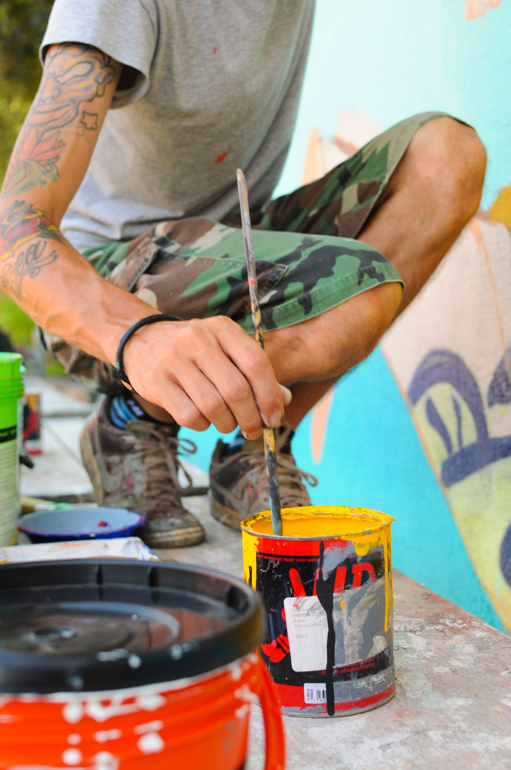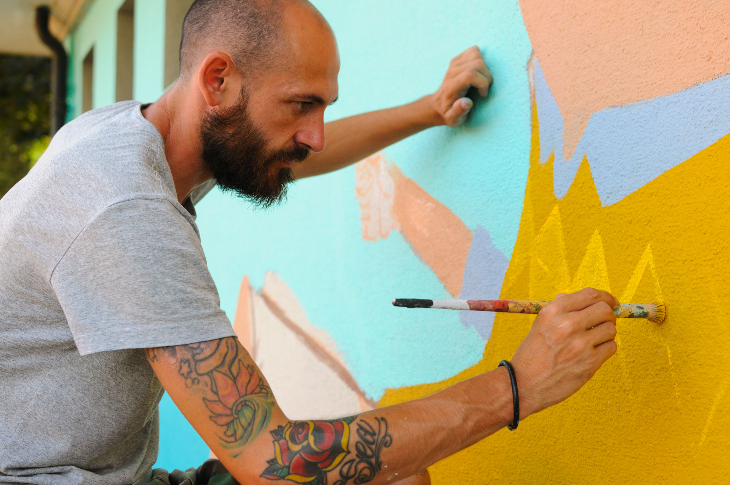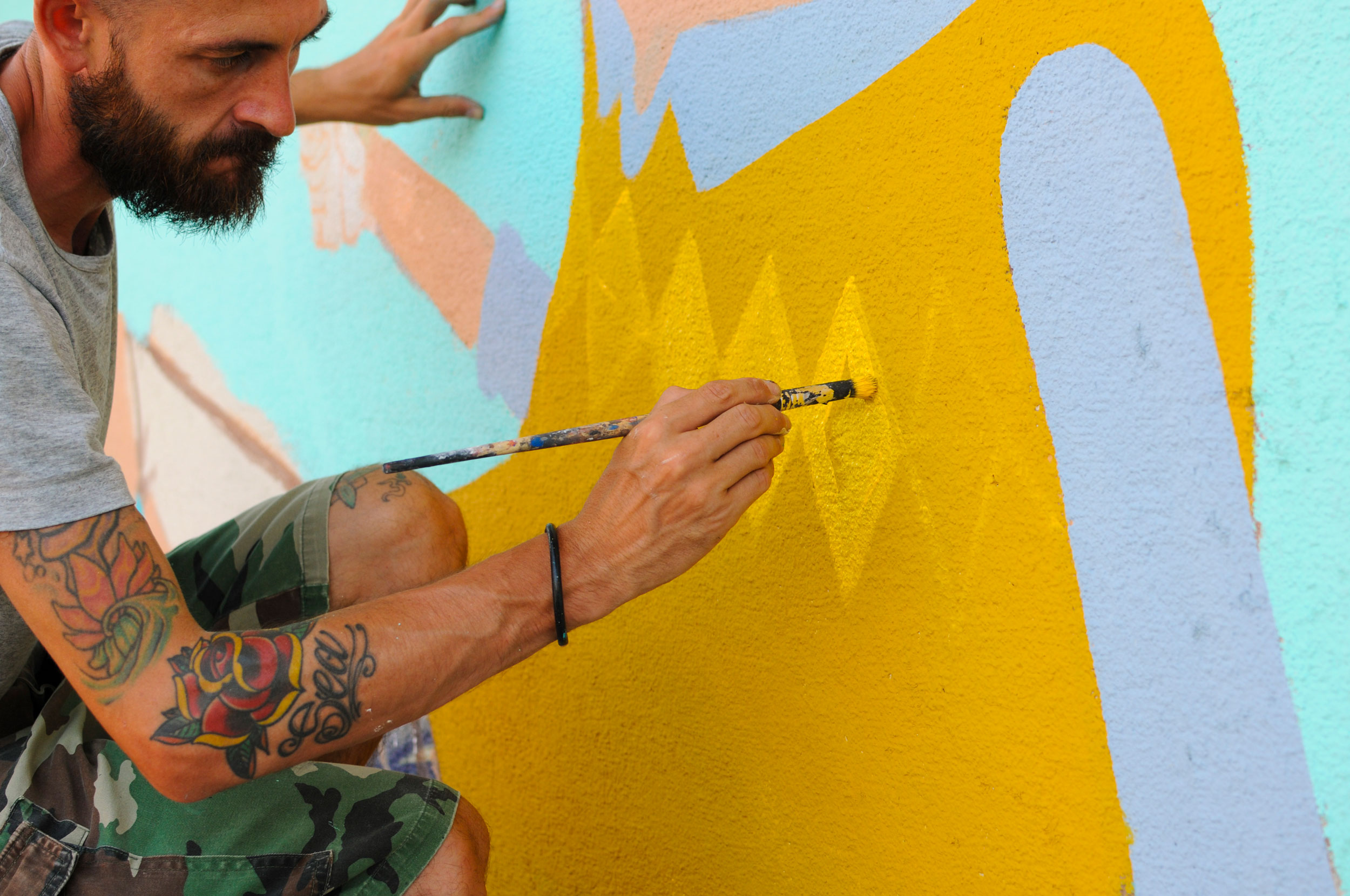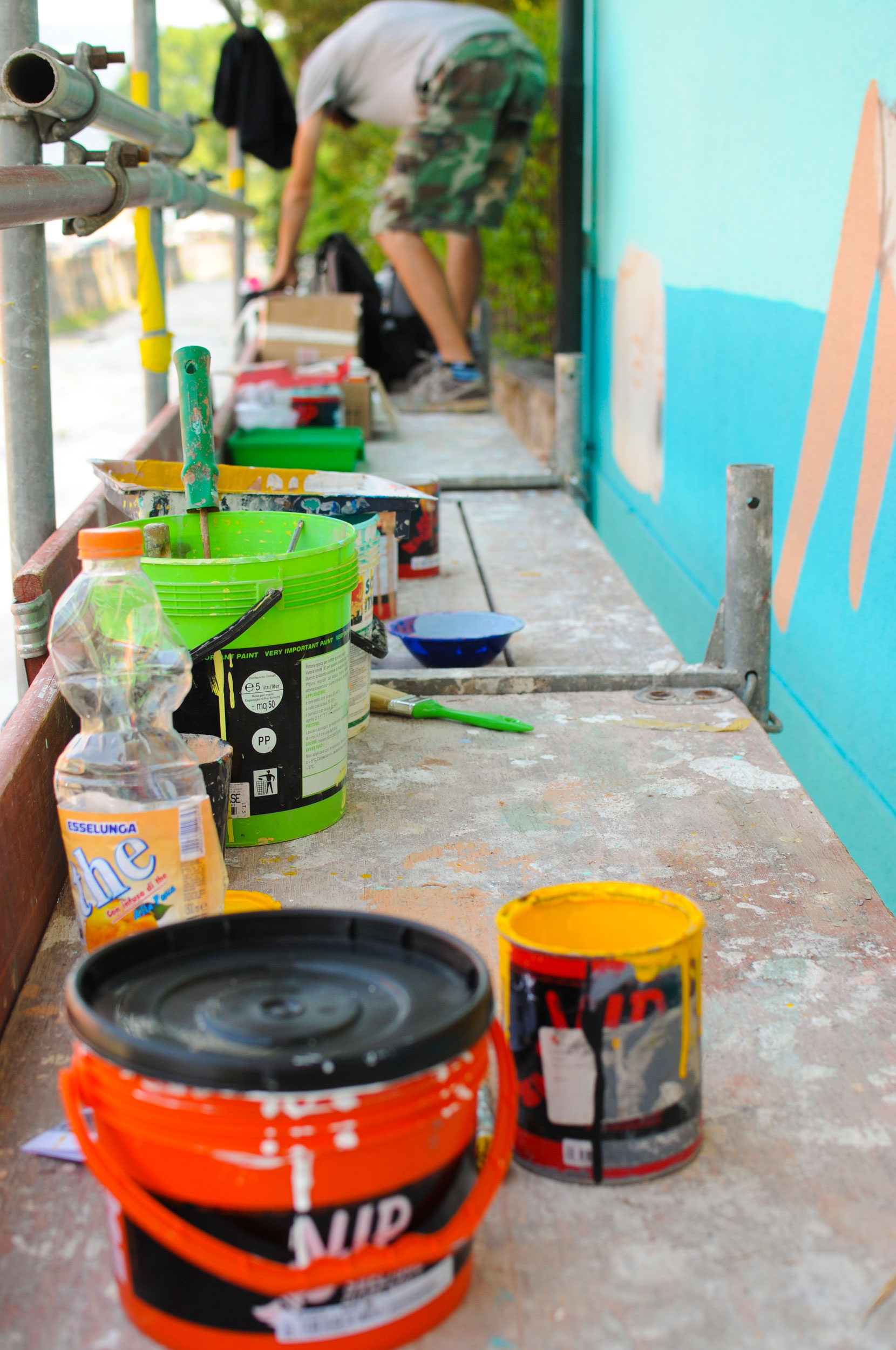 This creation by Seacreative tells the story of an imaginary, fantasy world made up of grotesque characters that do not belong to any specific urban landscape, but only to the games of his mind. Inspired undoubtedly by the presence of the nearby river, he painted a scene stylistically consistent with his previous creations: bizarre characters with surprised and absent expressions, surrounded by an imaginary background straight from the fantasy world. By drawing inspiration therefore from the elements surrounding the location, Seacreative leaves the viewer with different ways of interpreting what they see.