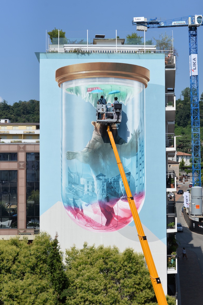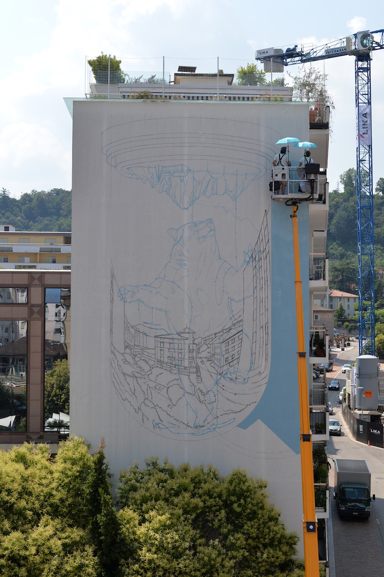“Wire” is a mural painting realized in the summer 2023 in Paradiso, by Nevercrew. The work was organized and curated by Freefox Architecture Studio and supported by a private client. The work was born as a spontaneous desire by the community; desired, organized and promoted by the family who lives and works in the building overlooking the wall on which it was painted, owners of the Freefox Architecture Studio, and supported by the owner of the wall in question.
